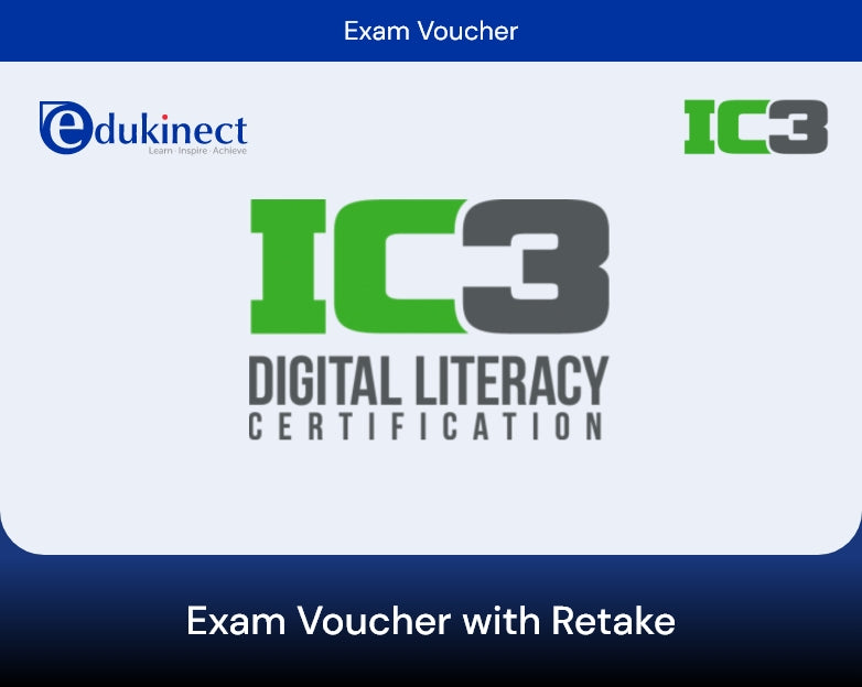This product includes one IC3 Digital Literacy exam voucher with retake and proctoring service through Edukinect and is valid for 1 year from purchase. This voucher can be used for any of the IC3 Digital Literacy Certification examinations: Computing Fundamentals, Key Applications, and Living Online. Please contact Edukinect at info@edukinect.com to book your exam.