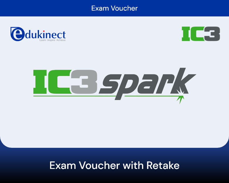 This product includes one IC3 GS5 Spark exam voucher with a retake and proctoring service through Edukinect and is valid for 1 year from purchase. Please contact Edukinect at info@edukinect.com to book your exam.