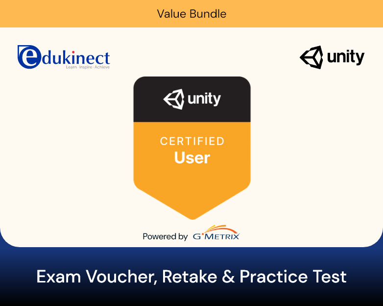 This product includes one Unity Certified User (UCU) exam voucher with retake, a single user practice test license and proctoring service through Edukinect and is valid for 1 year from purchase. It may be used for any of the UCU exams taken online at Edukinect. Please contact Edukinect at info@edukinect.com to book your exam.